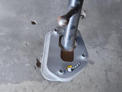 Fabricada em Alumínio naval, sendo muito mais leve que o modelo em Aço sem diminuir a resistência. Aumenta a área de contato entre o solo e o Cavalete lateral, evitando assim seu afundamento em terrenos mais macios.