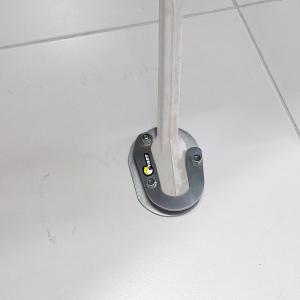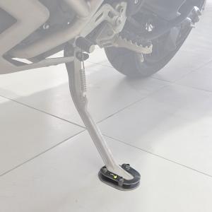 Fabricada em Alumínio naval, sendo muito mais leve que o modelo em Aço sem diminuir a resistência. Aumenta a área de contato entre o solo e o Cavalete lateral, evitando assim seu afundamento em terrenos mais macios.