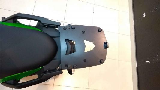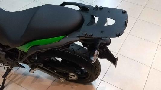 Fabricada em Chapa de Aço Carbono de 4,25mm de espessura sendo muito resistente e com acabamento em Pintura Epoxi Preta resistente à corrosão. Conta com travas especialmente desenvolvidas para uso em baús GIVI Monokey®, bem como os baús Start Racing S301.