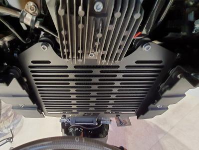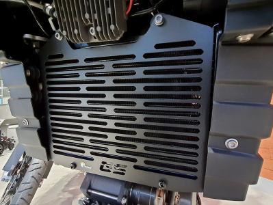 Feita em Aço Carbono de 1,5mm de espessura com acabamento em preto fosco epoxi. Auxilia na proteção de pancadas e pedras que podem ocasionar avarias ao radiador, além de harmonizar com o visual de sua moto.