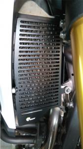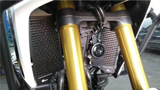 Feita em Aço Carbono de 1,5mm de espessura com acabamento em preto fosco epoxi. Auxilia na proteção de pancadas e pedras que podem ocasionar avarias ao radiador, além de harmonizar com o visual de sua moto.