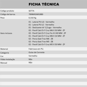Fabricado em PU de alta resistência, específico para aguentar impactos e abrasão da corrente. Possui refil substituível (Ref. Start. S095) para troca apenas do refil deslizante da corrente, se tornando um ótimo custo benefício.