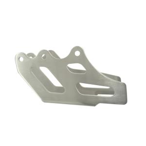 Fabricado em alumínio naval 3mm com acabamento em alumínio polido. Mantém a corrente de sua moto alinhada à coroa e protege contra impactos vindos de baixo da moto.
