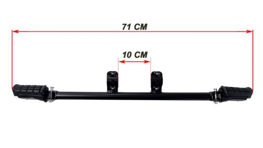 Pedaleira feita em aço e borracha vulcanizada com suporte tubular e demais componentes em Aço carbono de alta resistência e com acabamento em preto fosco Epoxi.