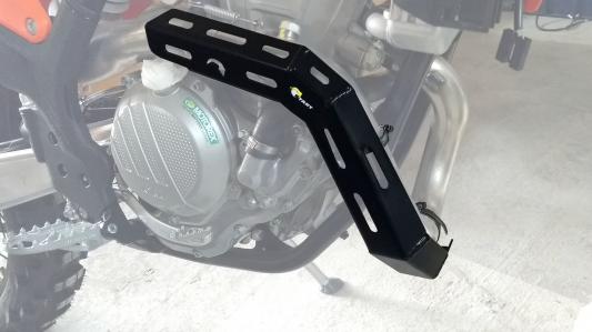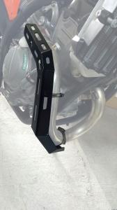 Fabricada em chapa de alumínio 2mm com acabamentos em alumínio escovado e pintura epoxi preta. Resiste aos impactos sofridos durante sua aventura sem tirar a beleza dos detalhes da sua moto.