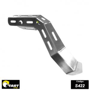 Fabricada em chapa de alumínio 2mm com acabamentos em alumínio escovado e pintura epoxi preta. Resiste aos impactos sofridos durante sua aventura sem tirar a beleza dos detalhes da sua moto.