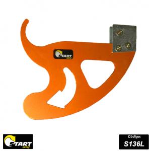 Fabricado em alumínio naval 4mm, com acabamento em alumínio polido ou anodizado laranja. É fixada no suporte do freio, abraçando o suporte.