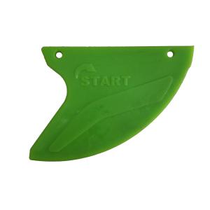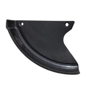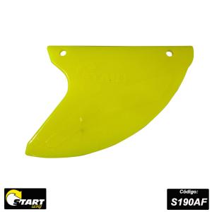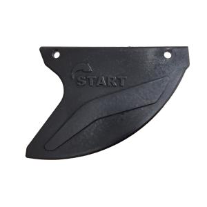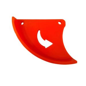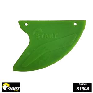 Fabricado em PU de alta resistência (o mesmo utilizado nos guias de corrente) com espessura de 12mm e com aba inferior acompanhando o disco, sendo muito resistente. Este item evita o risco de quebra do suporte da pinça, pois a peça cede lateralmente o suficiente para evitar a quebra.