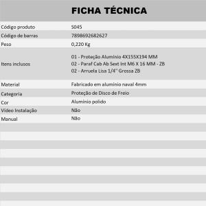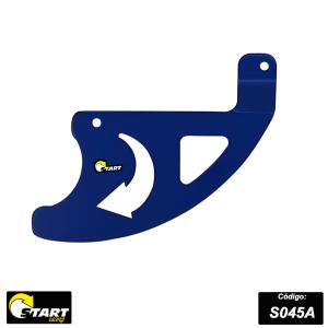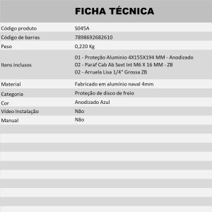 Fabricado em alumínio naval 4mm, com acabamento em alumínio polido ou anodizado azul. É fixada no mesmo suporte da proteção plástica original no suporte da pinça do freio