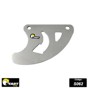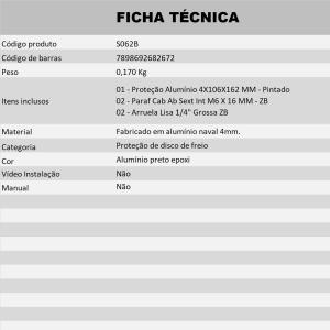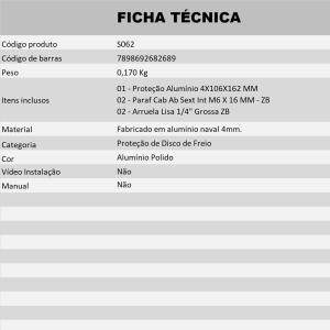Fabricado em alumínio naval 4mm, com acabamento em alumínio polido ou preto epoxi. É fixada no mesmo suporte da proteção plástica original, no suporte da pinça do freio.