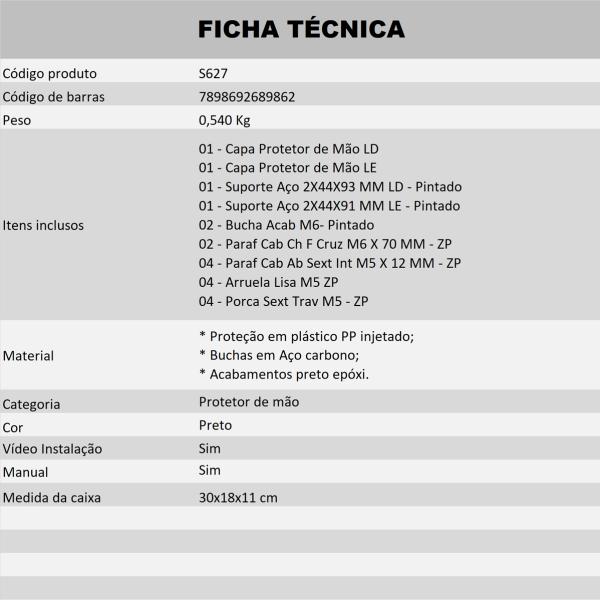 **O kit de ferragens que acompanha o protetor de mão foi desenvolvido com base no guidão original, podendo em alguns modelos usar os acessórios/parafusos originais da moto.**