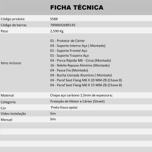**As proteções de cárter servem como primeira barreira contra os impactos, a mesma não garante que o cárter seja inviolável a qualquer custo ou hipótese. Dependendo do tipo e intensidade do impacto que ela sofrer, poderá causar danos ao cárter.**