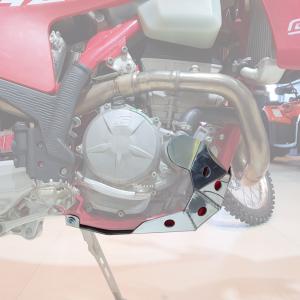 Fabricado em alumínio naval 3mm, com ênfase em proteger o quadro na parte inferior frontal, bomba da água e a tampa do magneto.