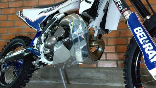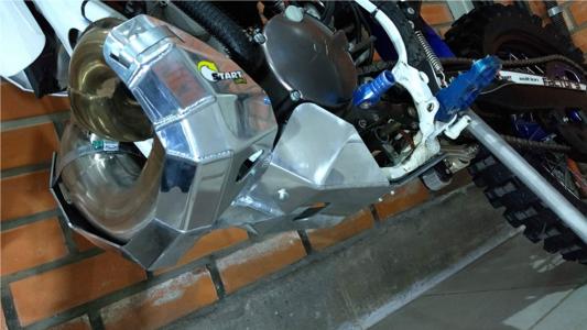 Fabricado em chapa de alumínio naval de 3mm, sendo extremamente resistente e conferindo muito mais proteção contra pancadas que possam danificar o motor e o escapamento da sua moto
