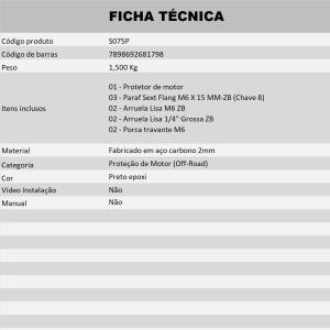 Fabricado em aço carbono 2mm, com acabamento preto epoxi. Com ênfase em proteger o quadro na parte inferior frontal, a bomba da água e a tampa do magneto.