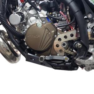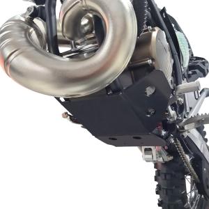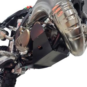 A proteção de motor cobre áreas críticas do motor, servindo como primeira barreira contra danos causados por pedras, galhos e outros detritos que podem ser encontrados em trilhas difíceis.