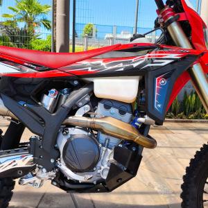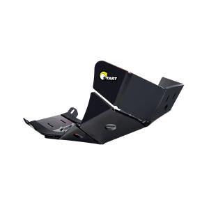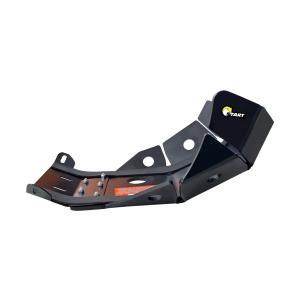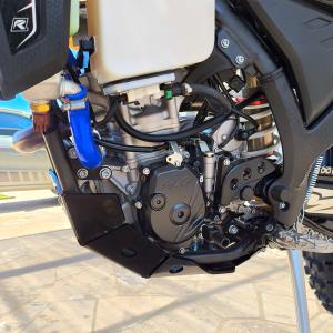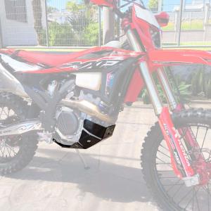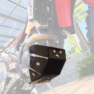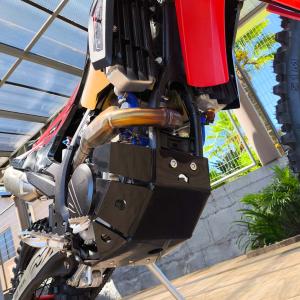 A proteção de motor cobre áreas críticas do motor, servindo como primeira barreira contra danos causados por pedras, galhos e outros detritos que podem ser encontrados em trilhas difíceis.