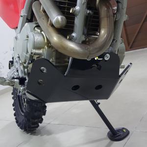 A proteção de motor cobre áreas críticas do motor, servindo como primeira barreira contra danos causados por pedras, galhos e outros detritos que podem ser encontrados em trilhas difíceis.