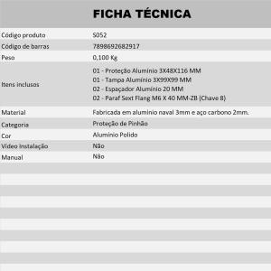 S052 - Conj. Tampa e Proteção casco/pinhão - Alumínio Polido (Peso embalado: 0,100 Kg)