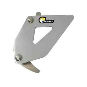 Fabricada em alumínio naval 3mm e aço carbono 2mm. Protege o casco do motor da correia, não deixando-a enrolar entre o casco e o pinhão. Substitui a tampa original por uma de alumínio ou aço com mais espaço para não haver acúmulo de barro.