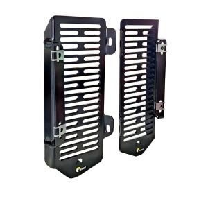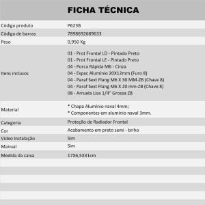 "Protetor de Radiador Frontal é um acessório projetado para proteger o radiador da moto de danos causados por detritos, pedras e outros objetos que podem ser projetados para a frente da moto enquanto você está dirigindo. Esse tipo de protetor é especialmente útil em situações off Road ou em estradas onde há maior probabilidade de encontrar esses tipos de obstáculos."