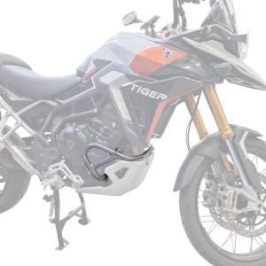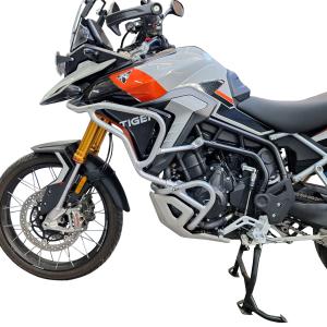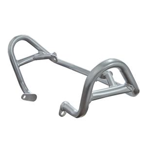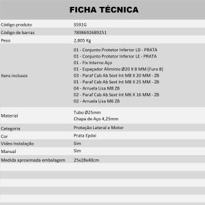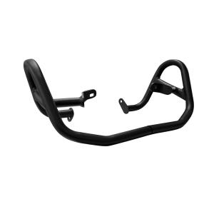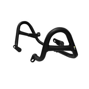 Estrutura tubular e fixadores em aço carbono de alta resistência e acabamento em preto fosco ou prata epoxi. Auxilia na proteção aos componentes do motor, além de complementar o visual de sua moto.