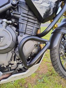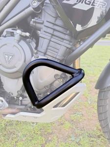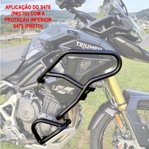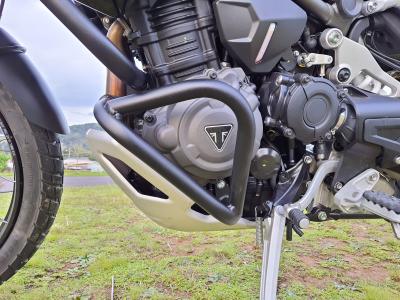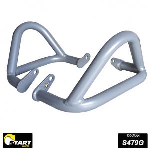 Estrutura tubular e fixadores em aço carbono de alta resistência e acabamento em preto fosco ou prata epoxi, tendo como função, ser a primeira barreira para a proteção aos componentes do motor, além de complementar o visual de sua moto.