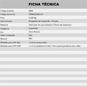 S089 - Alongador Alto ( + 2,3 cm pedaleiras-chão / +5cm ponta paralama tras.-chão ) - Zinco Branco
